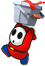さらに町を探索していると、大きなバケツで大量のペンキを運ぶ空飛ぶ船を見つけました。あれはクッパ軍団の……!?