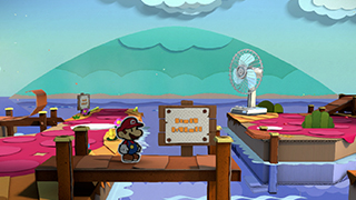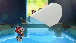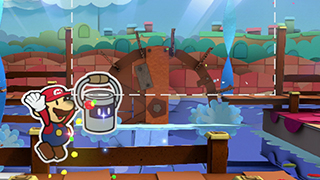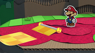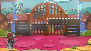 を押して点線のラインが現れたら、キリトリできるサインだよ。点線にそって、画面をチョキチョキできちゃうんだ。切り取った場所は、マリオが歩けるよ。