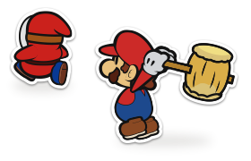 後ろからそうっと近づいて、こうげきしてみよう ! ジャンプでもイイけど、ハンマーの方がより強力かな ?