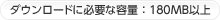 ダウンロードに必要な容量 : 180MB以上