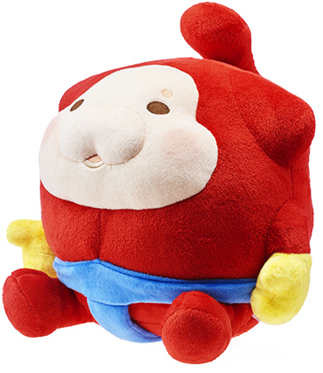 『引ク押ス ワールド』に登場する「マロ」が、かわいいおすわりポーズのぬいぐるみになって登場します。ふわモコな手触り、大きめサイズで、イスやひざの上にちょこんとすわってくれます。