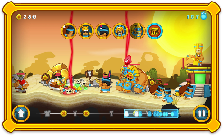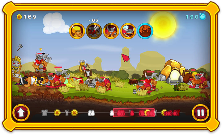 3つの種族が戦うコミカルな横スクロール型ストラテジー。